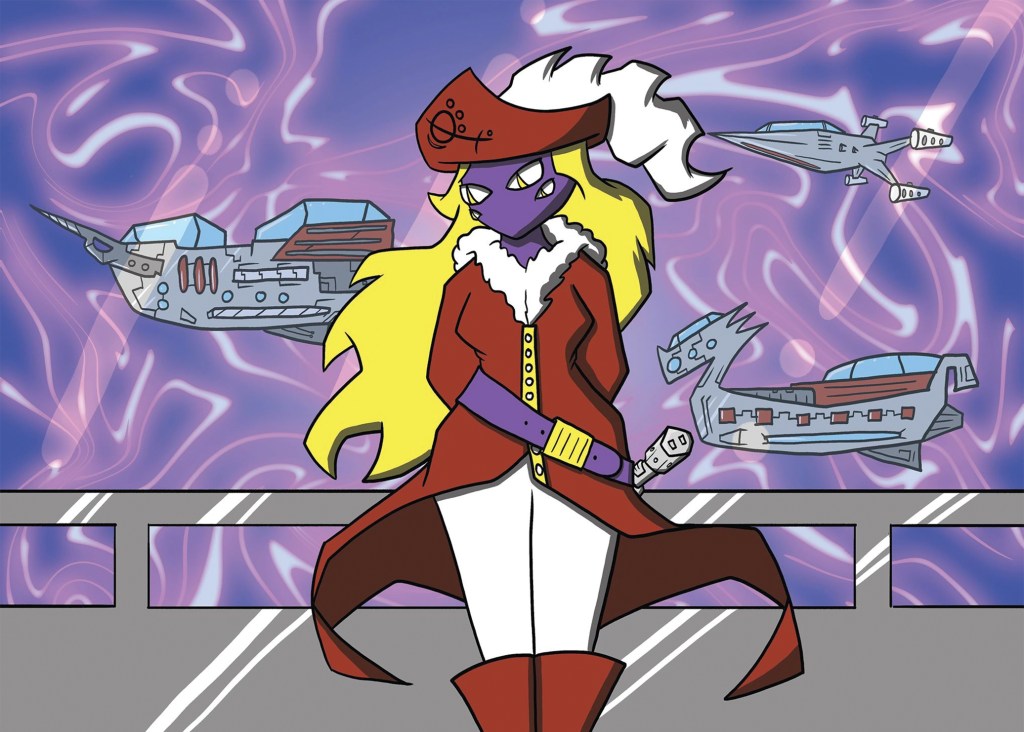 Throughout the entirety of space and time, there exists infinite parallel worlds. On each of these worlds, life is similar to ours but just a little different. Once Captain Krieg shows up with her crew of omnidimensional pirate raiders and ransacks the entire planet, most parallel realities look the same – a smoldering pile of ash. This ruthless buccaneer is on the warpath throughout all of space and time, taking whatever catches her eye.
